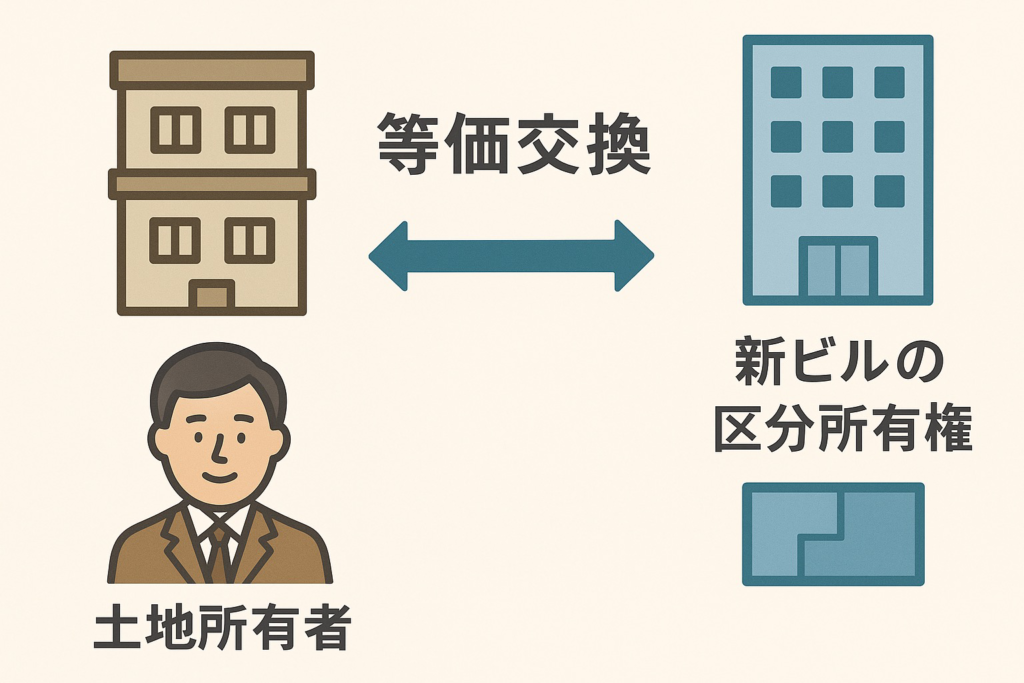 建物完成後は土地を提供したオーナー様たちは新築ビルの土地評価額に相当する区分所有権の一部を取得することで現金を使わずに取引が可能になるのです。