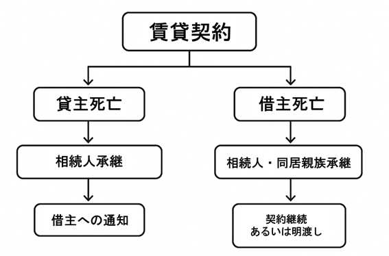 - 借主が亡くなった場合、契約は直ちに終了せず、相続人や同居親族が承継する場合がある