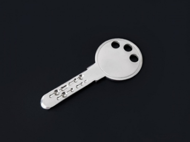 表面にディンプル(くぼみ)のある鍵で上下左右のピンに加え、斜め方向にもお印が備わっているため簡単にはピッキングできない構造になっています。